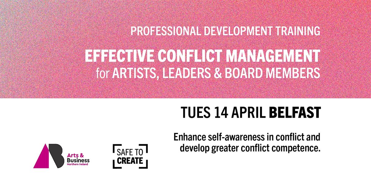 Arts and Business NI (A&B NI) and Safe to Create are collaborating to further support professional development in the arts, creative and cultural sector with this training. This training equips arts professionals and board members with practical skills to understand their own conflict styles and to manage workplace tensions more confidently and constructively across organisations.