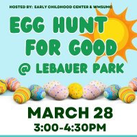 Our Egg Hunt for Good is an opportunity for kids of all ages to experience an Easter Egg Hunt in a new way! Step 1: Bring non-perishable food items to benefit local food pantries and place them in our donation bins. Step 2: Search for eggs on the LeBauer Park Great Lawn using a scavenger hunt map. Step 3: Trade in your eggs for a free bag of treats to take home! Step 4: Enjoy activities, crafts, and snacks as a family as we celebrate the gift of Easter! Optional Step 5: If you’re a grown-up, join us for some fun at our Adult Egg Hunt and help local non-profits win prizes to support their work.
