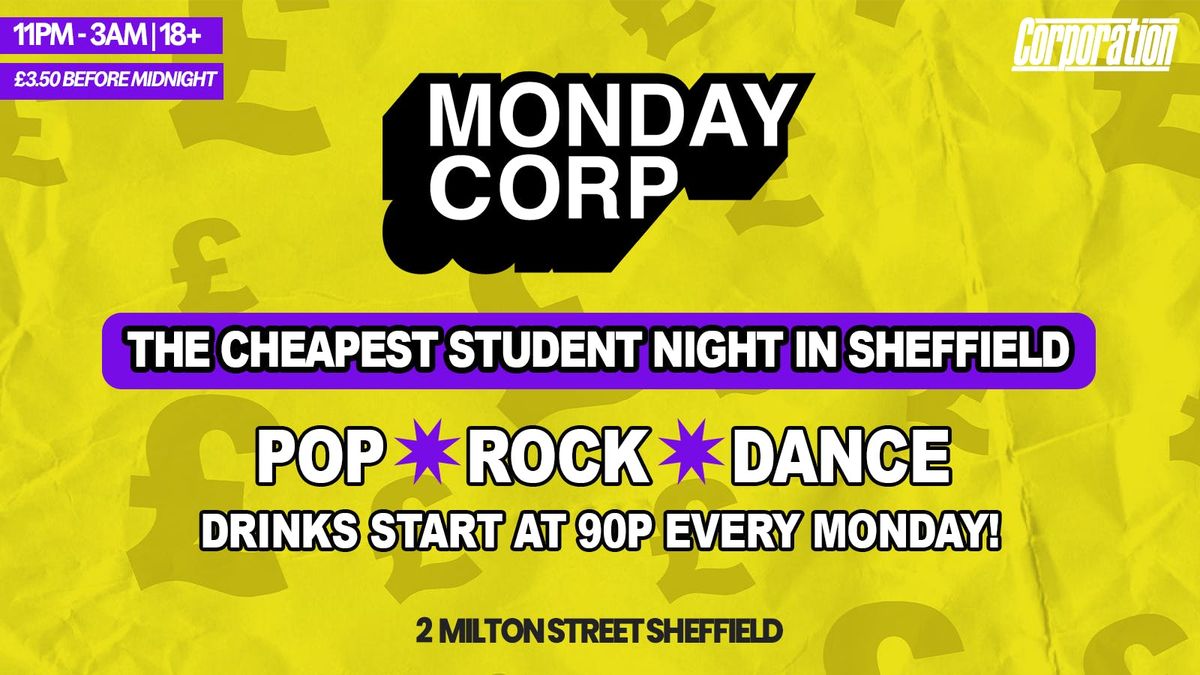 Monday nights don’t have to be boring — not in Sheffield, and definitely not at Corp. Monday Corp is the loudest, cheapest, and most legendary way to start your week. With drinks starting at just 90p, you can grab a round for your mates without rinsing your student loan.Whether you’re here for big room bangers, pop throwbacks, or classic rock chaos, we’ve got a room (and a playlist) for every mood. It’s the student night that’s become a right of passage – and for good reason.