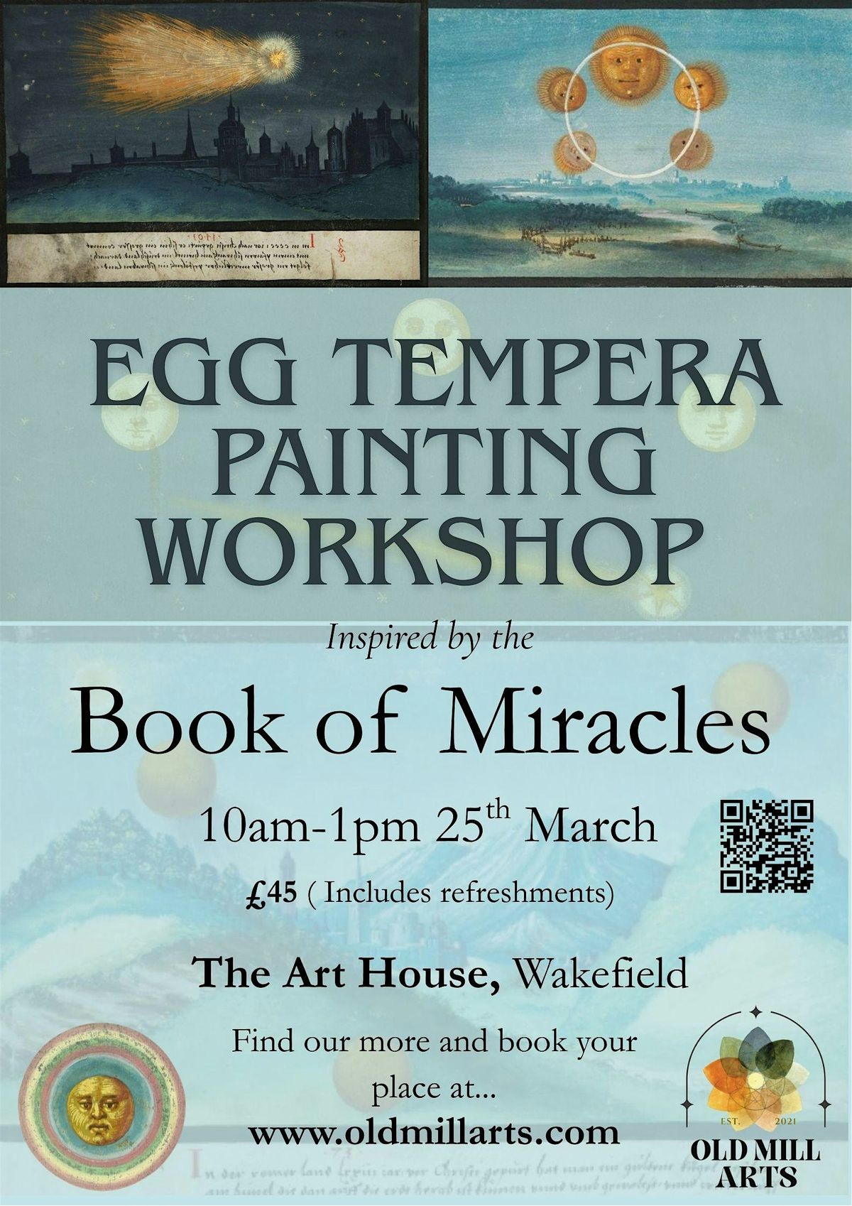 A half day workshop learning how to make historical tempera paints to then be inspired by the Book of Miracles.