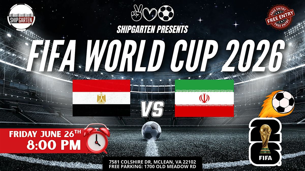 FRIDAY NIGHT. HISTORY VS INTENSITY. Egypt brings legacy, pride, and relentless passion. Iran brings discipline, structure, and tactical fire. 8PM kickoff. Prime time energy. Shipgarten becomes the biggest World Cup watch party in Tysons. THIS IS HOW YOU WATCH A FRIDAY NIGHT MATCH You show up early. You grab a cold one. You don’t miss a goal. Massive screens & stadium-level sound $40 Mix & Match Beer Buckets (5 – 16oz cans) 100+ beer varieties available All ages welcome (21+ to drink) The most energetic World Cup crowd in Tysons This isn’t background noise. It’s full matchday atmosphere. PASSION MEETS PRECISION Egypt’s attacking energy. Iran’s defensive discipline. Friday night at 8PM means high stakes, loud reactions, and late celebrations. Come early. Stay late. Celebrate big. GAME DAY DETAILS Friday, June 26th Kickoff: 8:00 PM Shipgarten – 7581 Colshire Dr, McLean, VA 22102 FREE & large parking at 1700 Old Meadow Rd FREE ENTRY – Pay only for what you consume Coming with your crew? Upgrade your match day. More Info Click Here The biggest crowd. The coldest beer. The loudest World Cup in Tysons.