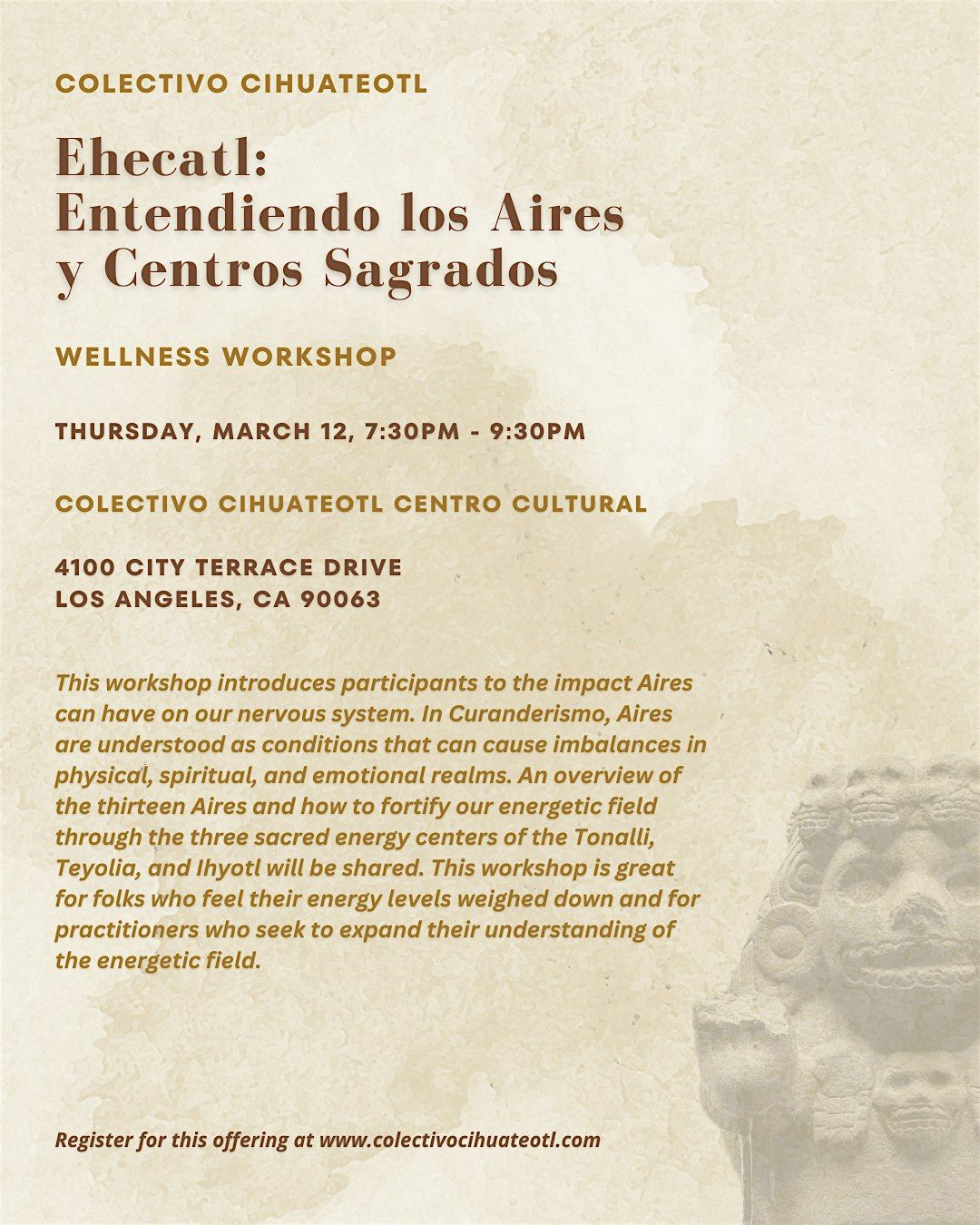 This workshop introduces participants to the impact Aires can have on our nervous system. In Curanderismo, Aires are understood as conditions that can cause imbalances in physical, spiritual, and emotional realms. An overview of the thirteen Aires and how to fortify our energetic field through the three sacred energy centers of the Tonalli, Teyolia, and Ihyotl will be shared. This workshop is great for folks who feel their energy levels weighed down and for practitioners who seek to expand their understanding of the energetic field.