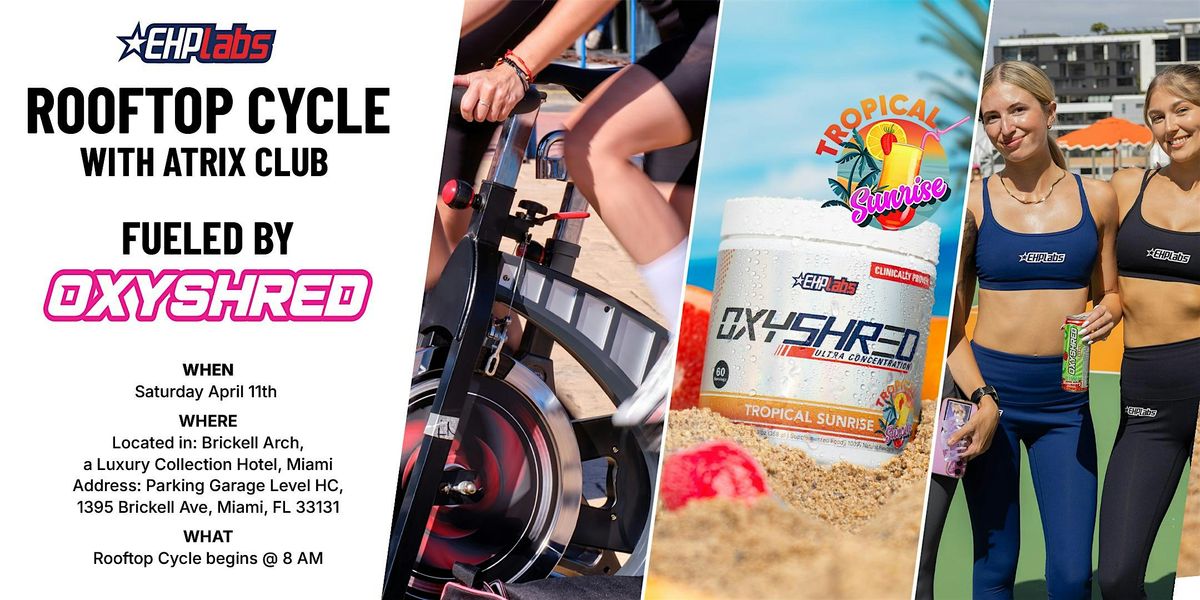Get ready to ride, sweat, and burn! Please join EHPlabs for a high-intensity rooftop cycle ride in Brickell, on Saturday April 11th from 7:30-9:15 AM. Featuring Tropical Sunrise OxyShred, OxyShred Energy and more of your favorites 🔥 Each ticket includes the following: