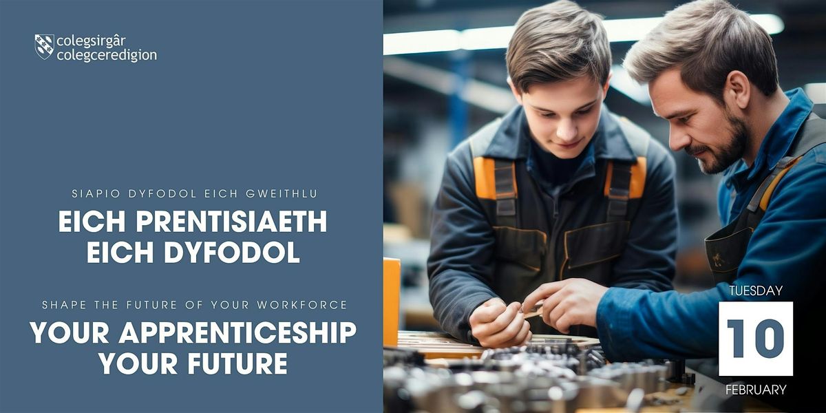 Mae’n bleser gennym eich gwahodd i’n digwyddiad Eich Prentisiaeth, Eich Dyfodol, sydd wedi’i gynllunio i gysylltu cyflogwyr gydag unigolion ifanc dawnus sy’n awyddus i gychwyn ar eu taith brentisiaeth.