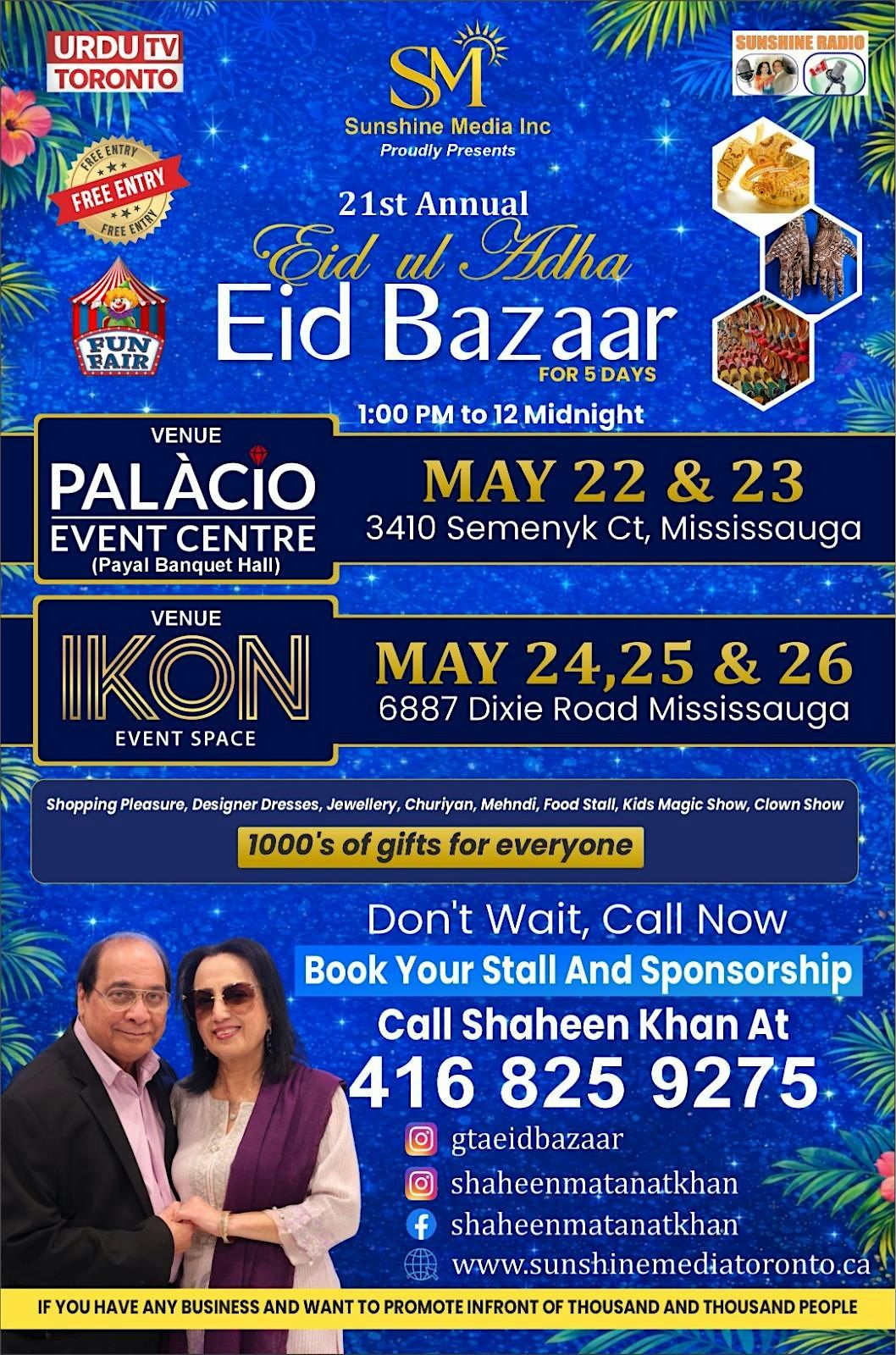 EID Bazaar May 22, 23 @ Palacio Event Centre, Mississauga FREE ENTRY