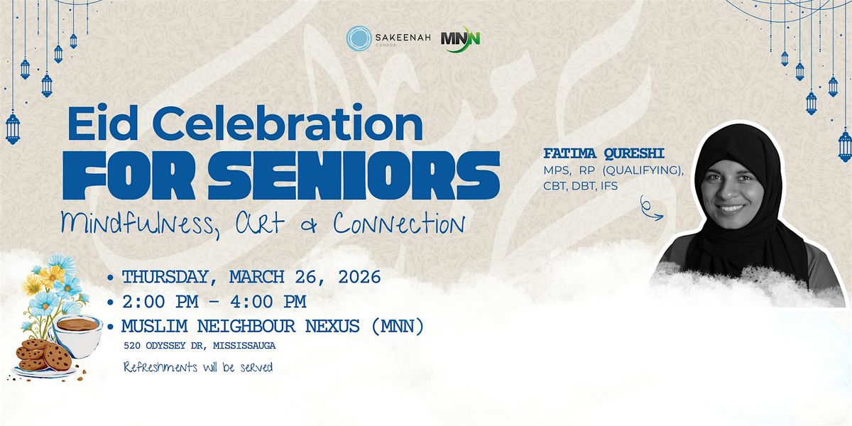 Through guided mindfulness practices, a hands-on art therapy session, and a relaxed social gathering, participants will have opportunities to reduce stress, express themselves creatively, and build meaningful connections with peers. Rooted in both contemporary wellness approaches and culturally familiar values of gratitude, compassion, and togetherness, the event supports seniors in carrying the peace and joy of Eid into their daily lives.