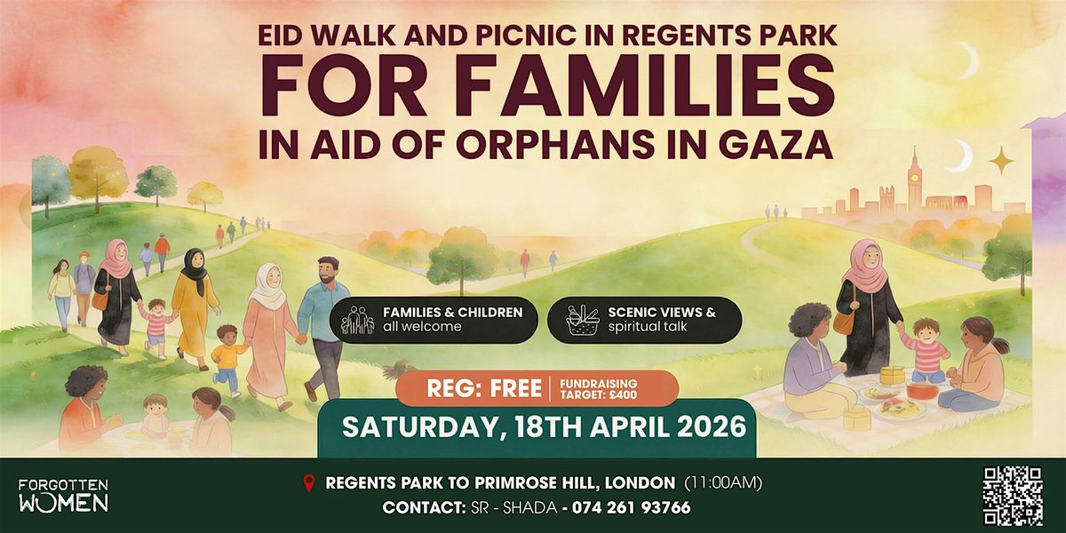 Regent's Park to Primrose Hill | London Join us on Saturday, 18th April 2026, from 11:00 AM, for a heartwarming Eid Walk & Picnic for Families — a meaningful day out in the heart of London while raising vital funds to support orphans in Gaza.