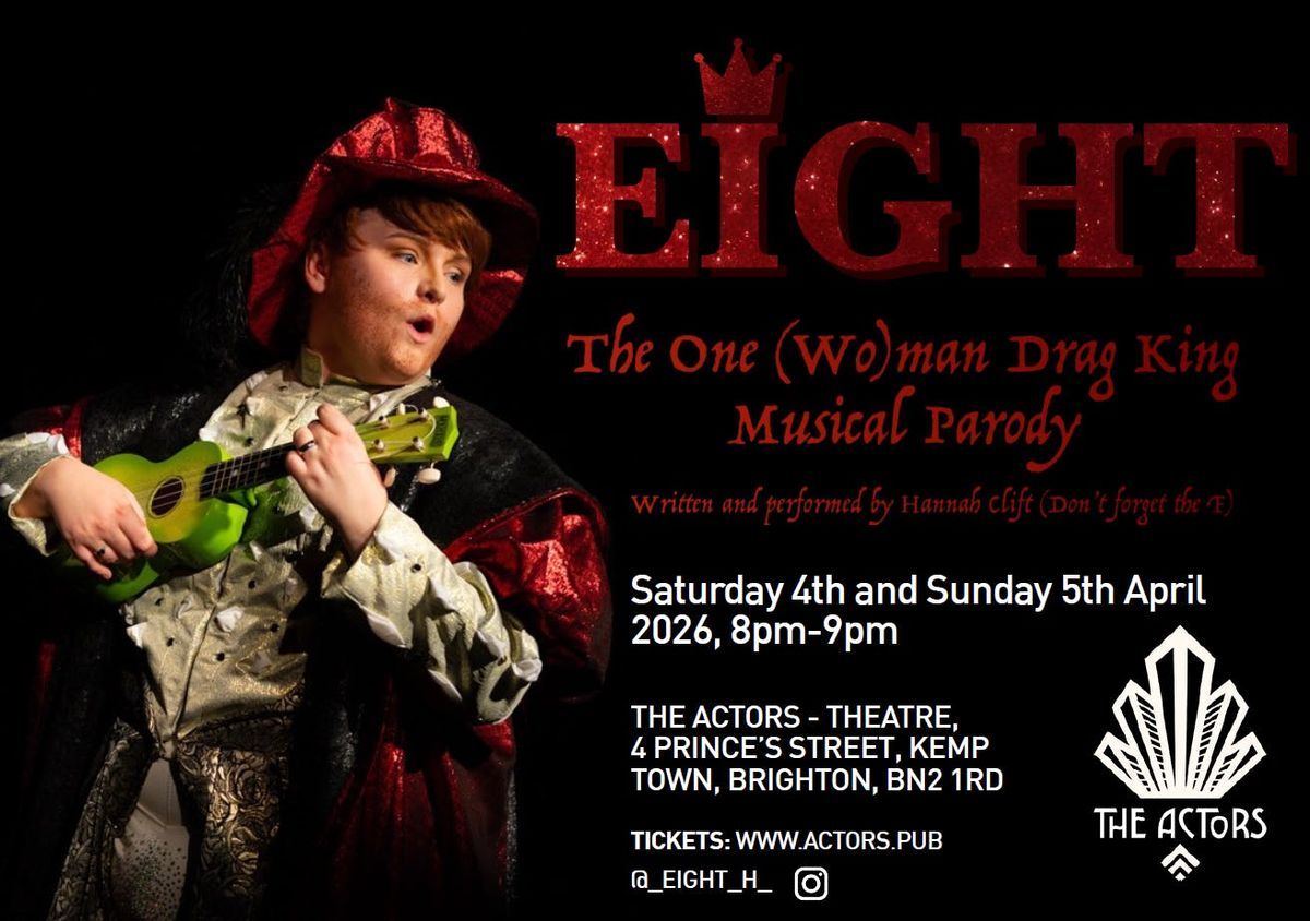 Written by Bristol based Drag King, Hannah Clift, EIGHT is a love letter to SIX The Musical, rock music of the 70s and 80s and to the queer art of Drag! Hannah can be found on Instagram and TikTok at @ _hannah_clift_