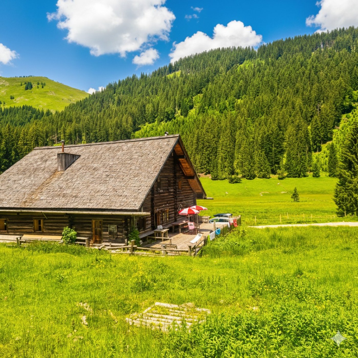 Mitten in der Natur, umgeben von grünen Almwiesen und weiter Berglandschaft, findest du einen Ort zum Durchatmen. Einen Ort, an dem du für ein paar Tage aus dem Funktionieren aussteigen und wieder mehr bei dir ankommen kannst.