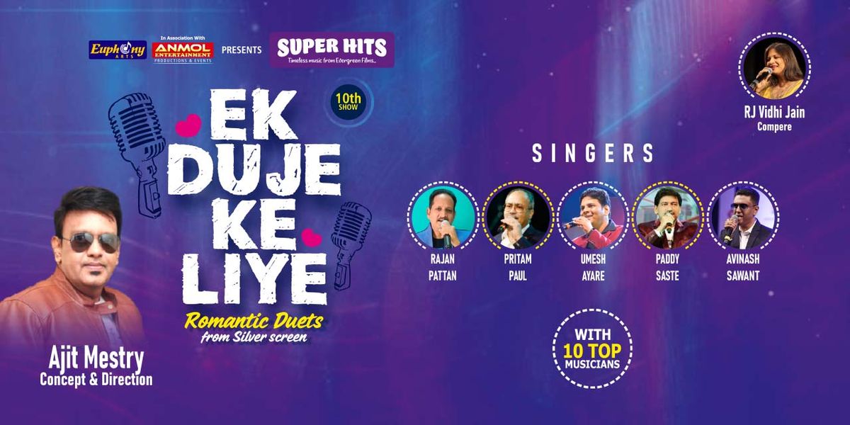 Ek Duje Ke Liye is a specially curated musical concert celebrating the golden era of Bollywood romantic duets, along with select evergreen melodies from later years. This concert pays tribute to the magical chemistry created by legendary playback singers whose voices defined romance on the silver screen.