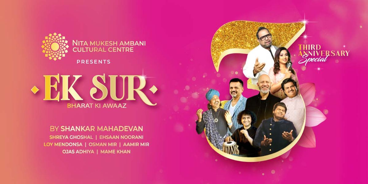 As the Nita Mukesh Ambani Cultural Centre marks three transformative years, it is all set to celebrate with ‘Ek Sur - Bharat Ki Awaaz’ – a grand musical tribute. Conceived as a journey across the country’s vast sonic landscape, the evening features the legendary trio Shankar Mahadevan, Ehsaan Noorani, and Loy Mendonsa, alongside leading playback sensation Shreya Ghoshal, Rajasthani folk icon Mame Khan, Gujarat’s celebrated duo Osman & Aamir Mir, and percussion prodigy Ojas Adhiya.