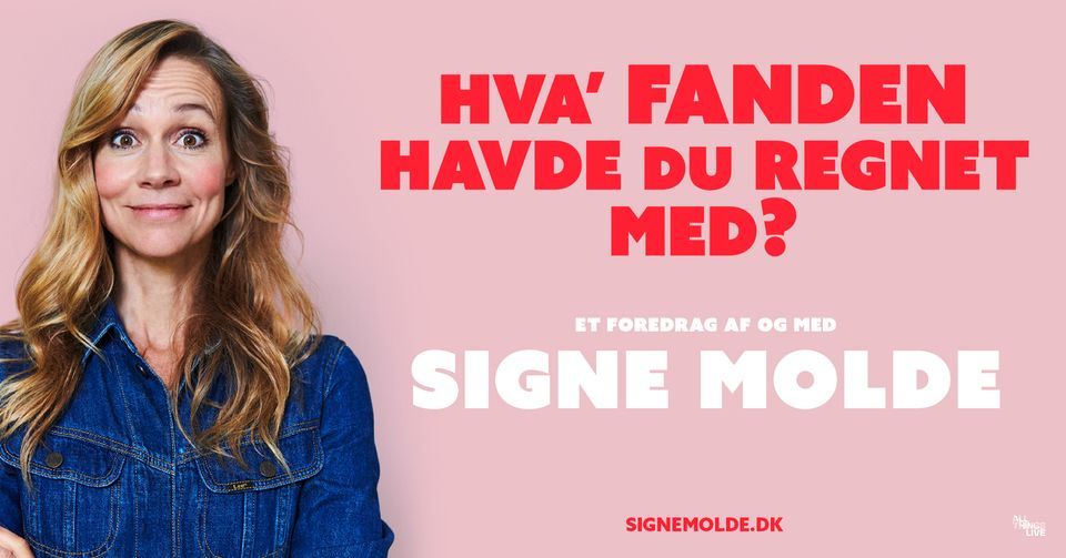 En af landets sjoveste kvinder har skabt et hylende morsomt foredrag - og du kan godt glæde dig.TV-vært og komiker Signe Molde er kendt og elsket for sin skarpe tunge og direkte facon - og i ”Hva’ Fanden Havde Du Regnet Med?” fortæller hun ærligt og hudløst om sine egne absurde forventninger til sig selv og livet. Om præstationsangst, midtvejskrise og om at lyve for statsministeren. Om at være elendig til at sige nej, og om dengang hun vistnok fik finger af en greve…