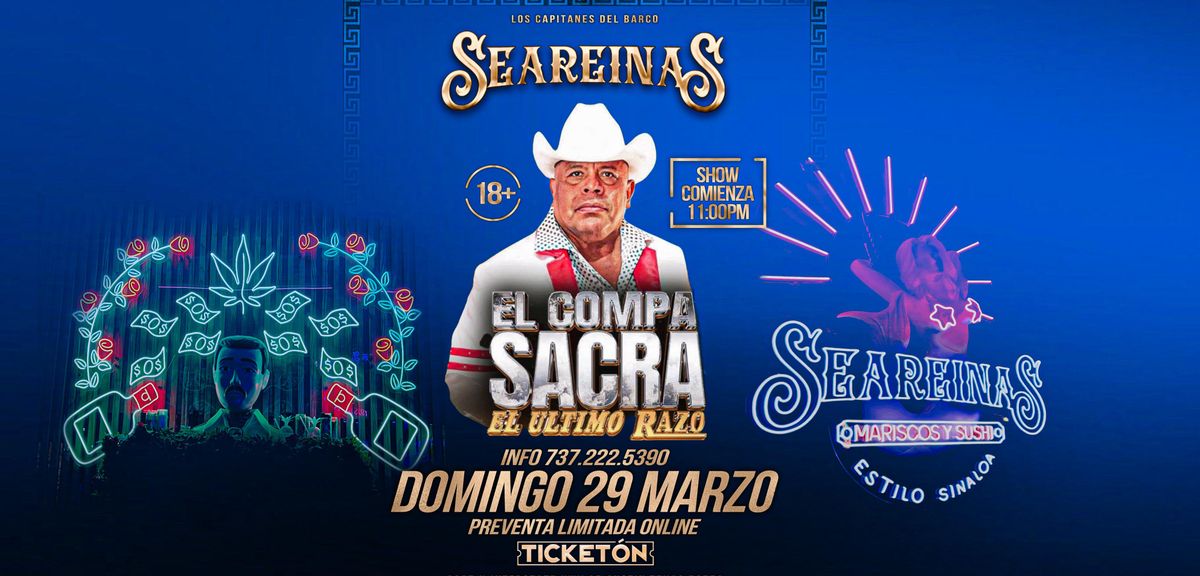 Experience the exciting event 'EL COMPA SACRA EL ULTIMO RAZO' at Seareinas, Austin, TX, United States. This must-attend gathering promises an unforgettable experience for all attendees. Join us for a day filled with innovation, networking, and inspiration. Claim your ticket to be at the forefront of exciting innovation. #ELCOMPASACRAELULTIMORAZO #event #exciting #AustinEvents #TXEvents