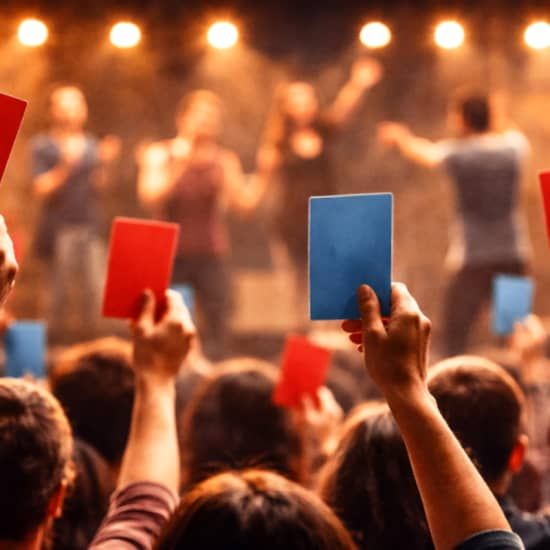 Qué vas a disfrutar 🎭 La comedia, el riesgo y la improvisación en estado puro se mezclan en una batalla absurda donde el público decide quién gana 👉 El mejor teatro en pleno corazón de Lavapiés 🍸 Si compras una bebida en el bar del teatro puedes disfrutarla mientras ves el espectáculo Información 📅 Fecha y hora: selecciona la fecha y hora que quieras directamente en el selector de entradas 📍 Lugar: La Escalera de Jacob, Madrid ⌛ Duración: 60 minutos aprox. ❗ Una vez comenzado el espectáculo no se permitirá el acceso a la sala 👉 Se puede entrar a la sala con bebida, siempre que se adquiera en el bar Descripción Los mejores improvisadores de Madrid se juntan para jugar un Match de Impro a medianoche. Dos equipos se enfrentarán en un combate sin igual donde nada está preparado y todo puede pasar. La comedia, el riesgo y la improvisación en estado puro se mezclan en una batalla absurda donde el público decide quién gana. Cada viernes y sábado a las 23:59 h, La Escalera de Jacob se convierte en un ring teatral donde la energía sube, las decisiones son cuestionables y el espectáculo manda por encima de todo. Un combate festivo, gamberro e imprevisible. Si vienes, formas parte del combate. ¡Consigue tus entradas para El Match de Impro en La Escalera de Jacob, Madrid!