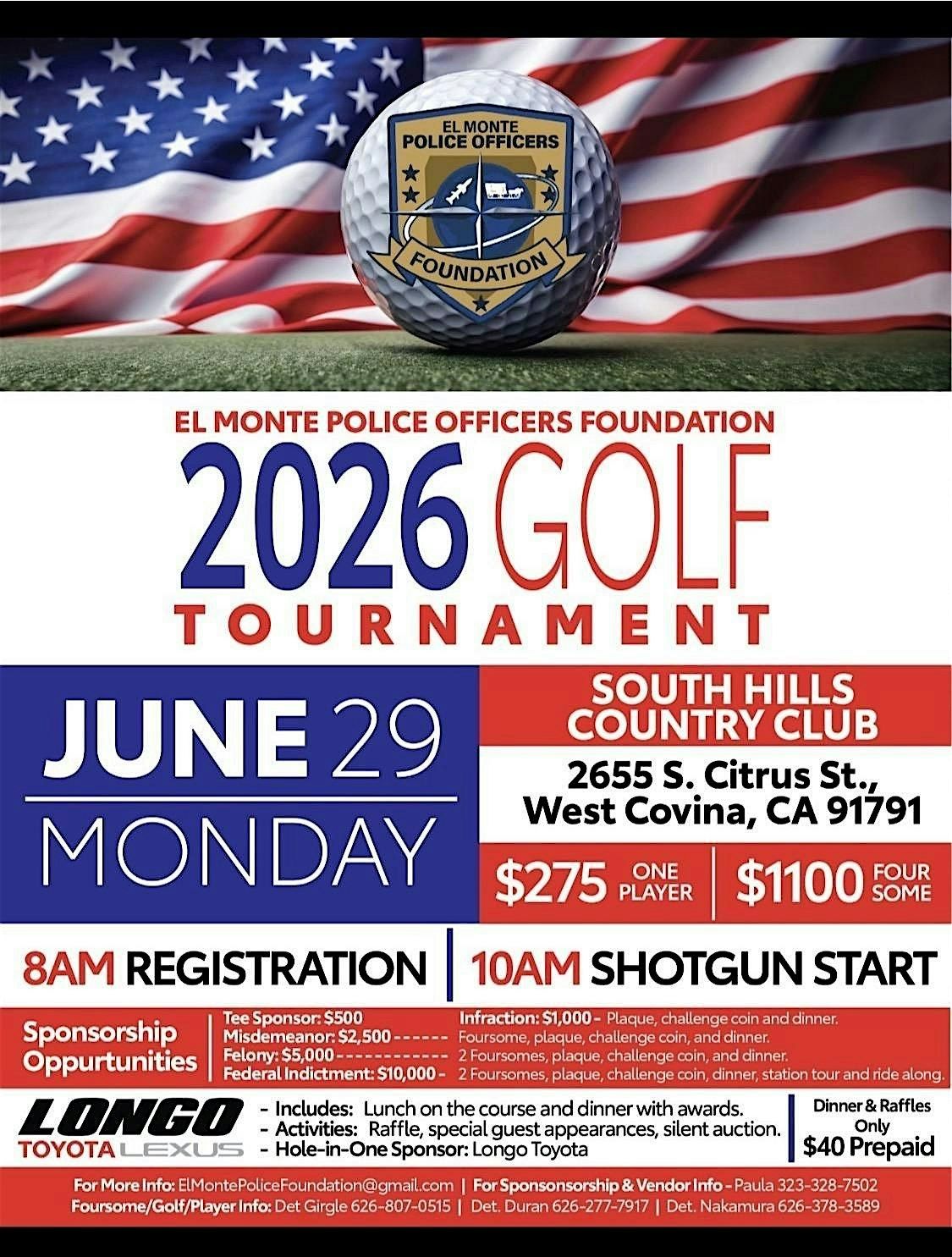 Join us for a day on the green supporting El Monte Police Officers Foundation and our initiatives that support community and our Officer’s.About this Event
