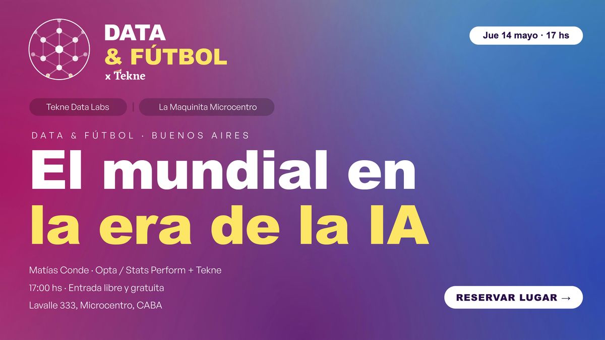 Charla + Demo en vivo. Datos e IA transformando el fútbol de élite. Con Matias Conde (Opta) y Tekne Data Labs.