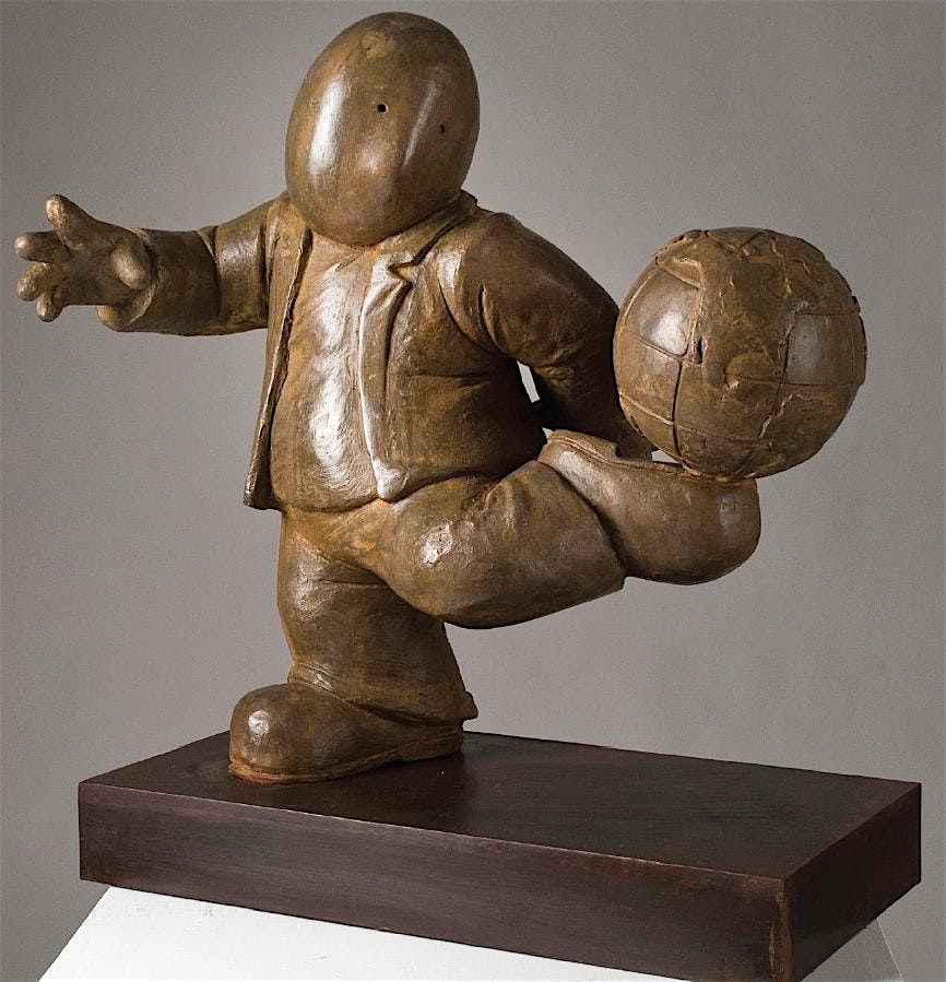 The Latino Cultural Center is proud to present “El Mundo es un Juego”, a profound sculptural work by the internationally acclaimed Mexican artist and architect Rodrigo de la Sierra. The sculpture will be on view from April 17 to May 22, 2026. Curated by Elena Catalán, this piece introduces the public to de la Sierra’s iconic character, Timoteo, a figure that has become a global symbol of contemporary human reflection. El Mundo es un Juego is a bronze and iron sculpture featuring Timoteo. The work captures a playful yet poignant stance.