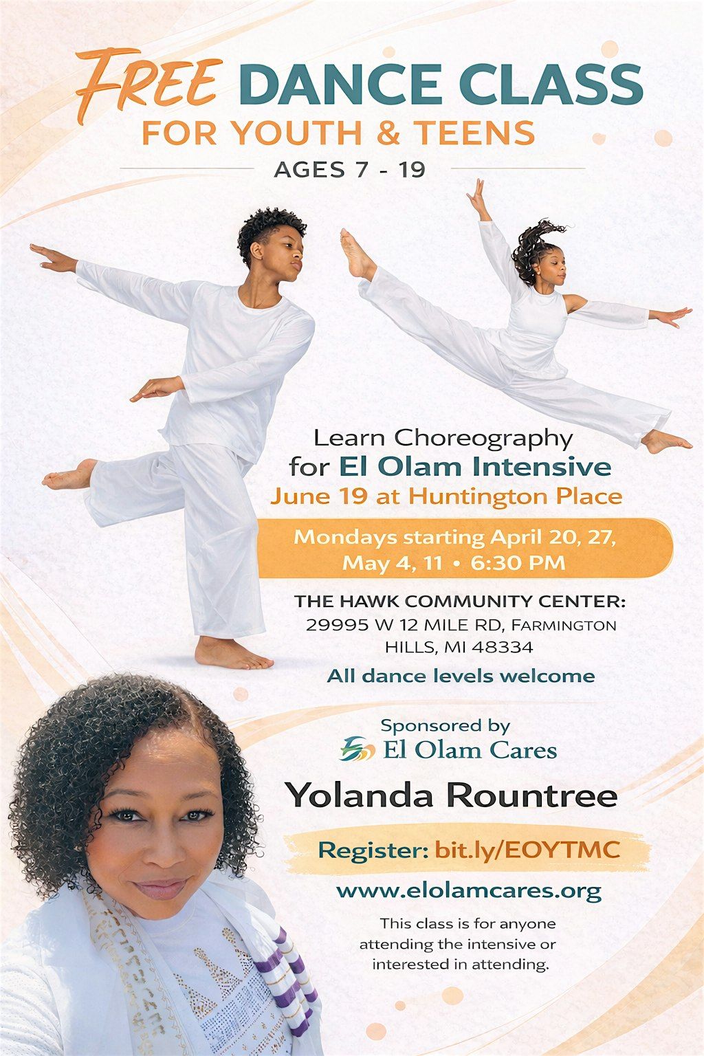 El Olam Cares is offering a free dance class to youth and teens. They will learn choreography that will be ministered at El Olam Intensive.