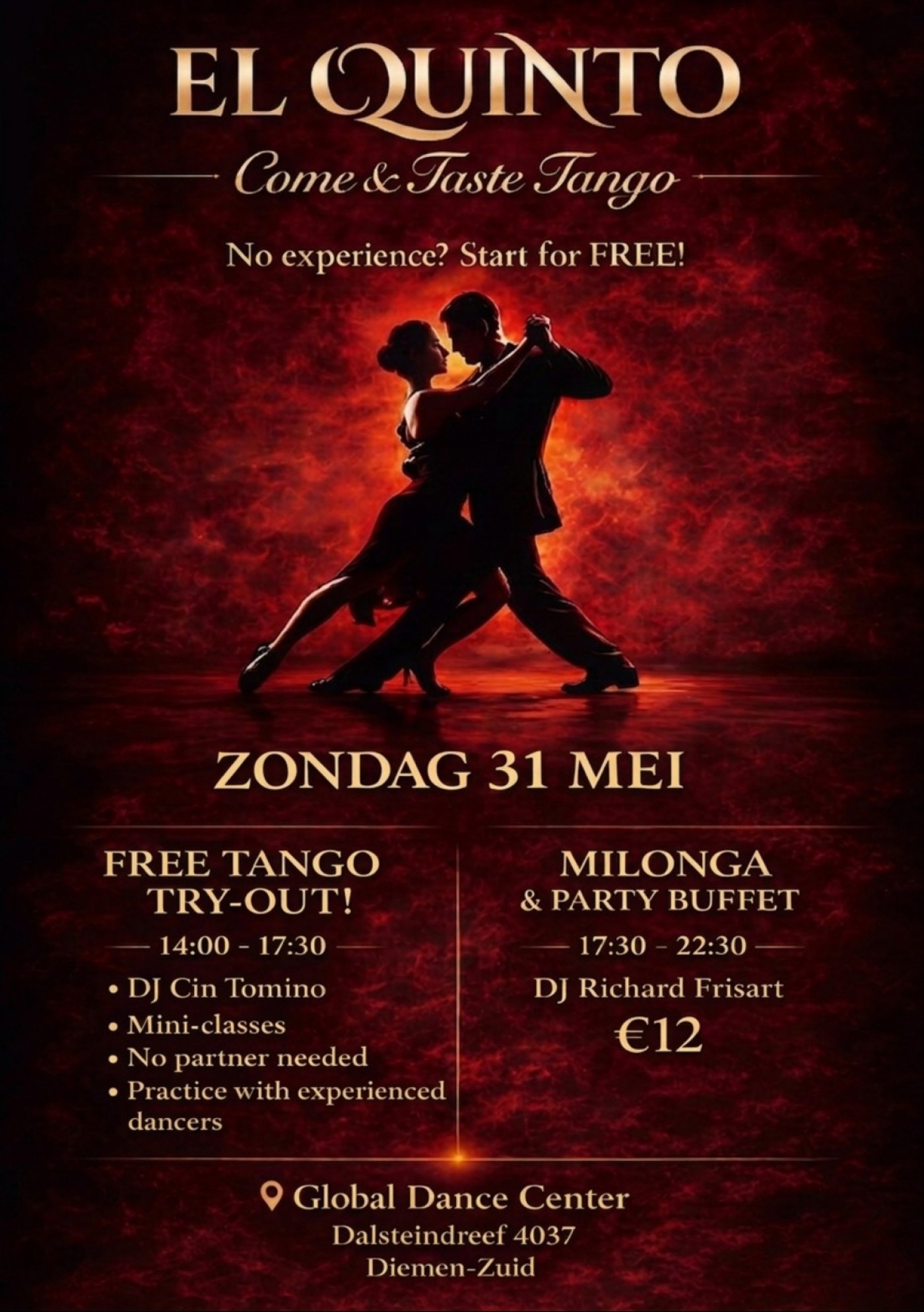 • 17:30-22:30 milonga/salon w/ party buffet ~ DJ Richard Frisart playing the best tunes and tandas bringing down da house!
