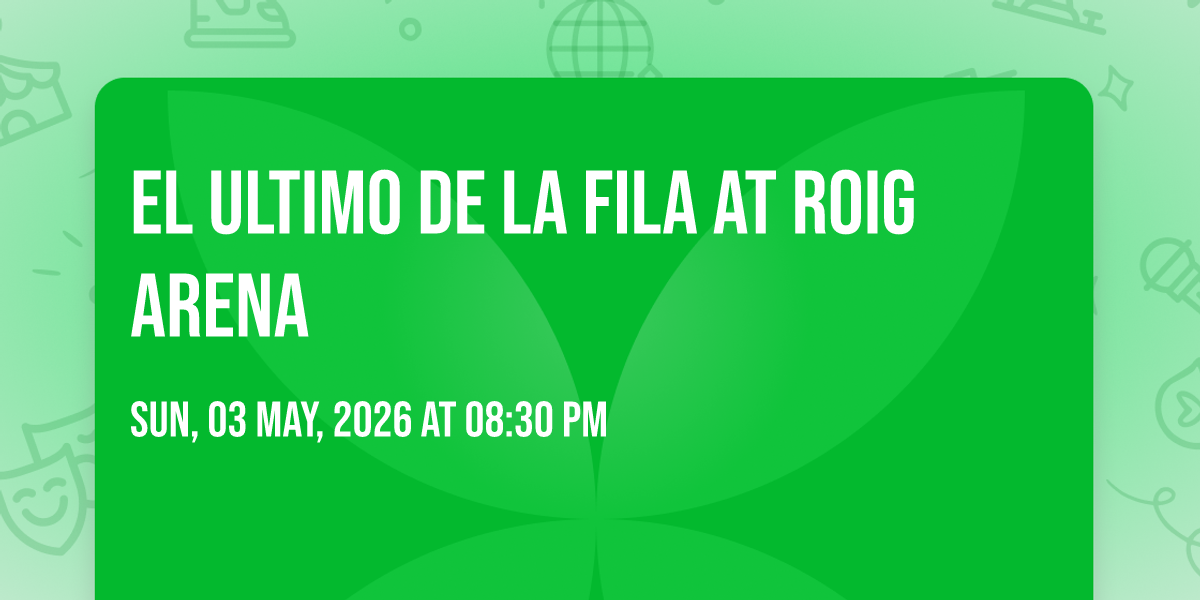 🌟 Be part of history at El Ultimo de la Fila at Roig Arena, an extraordinary gathering that will captivate your imagination! 🏛️ The prestigious Roig Arena in Valencia, VC sets the stage for an unforgettable experience on May 3rd, 2026 at 08:30 PM. ✨ They are bringing together the finest elements of entertainment and innovation to create moments that will take your breath away. From the moment you arrive, you'll be immersed in an atmosphere of wonder and excitement. 🎯 This carefully planned event ensures every guest experiences something truly special. 🎊 Early booking is recommended for this must-attend event of the season!