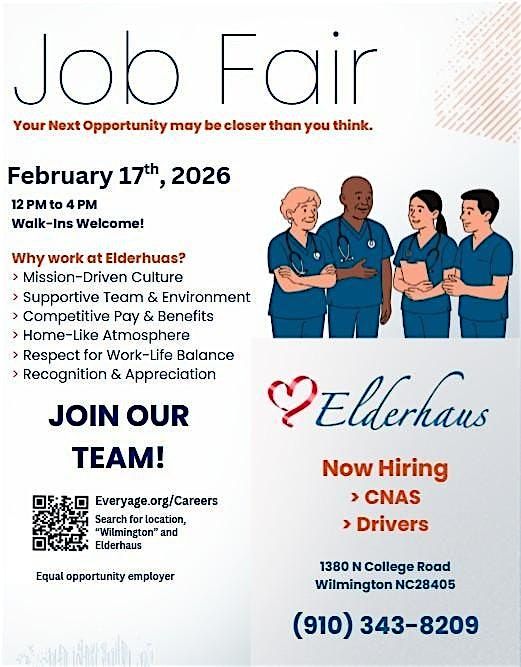 Elderhaus will be hosting a Job Fair on February 17th, 2026, from 12 PM to 4 PM, and walk-ins are welcome!