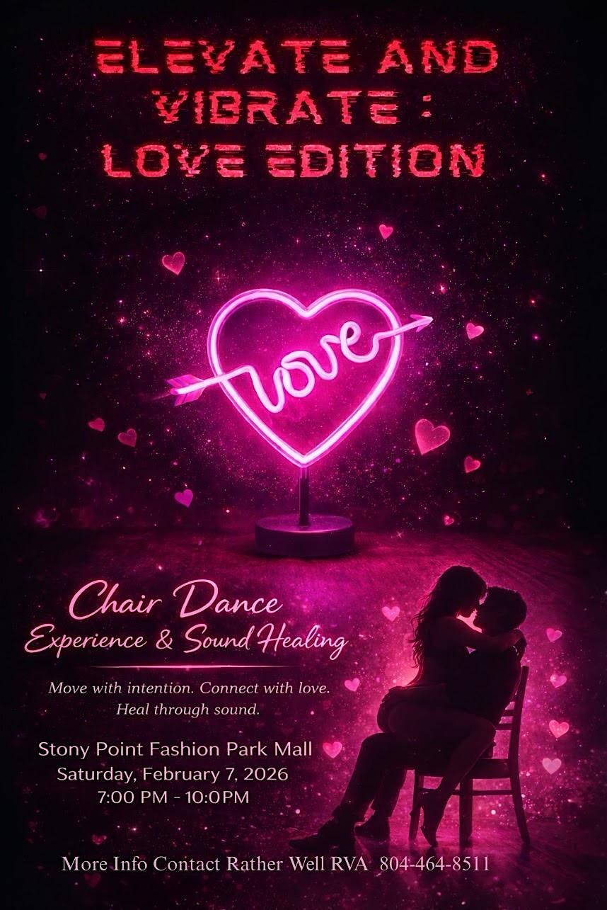 Enjoy a night of relaxation and fun with your Partner , Spouse,Bestie ,etc . Learn a sensual chair routine and experience a relaxing Sound Bath with an array of instruments to balance your Mind and Body .