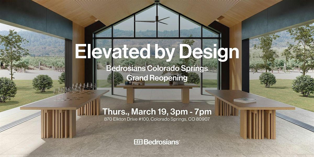 Join us for Elevated by Design, the grand reopening of the Bedrosians Colorado Springs showroom. Celebrate our newly reintroduced space alongside fellow designers, contractors, architects, fabricators, and trade partners for an afternoon and evening of inspiration, connection, and elevated materials.