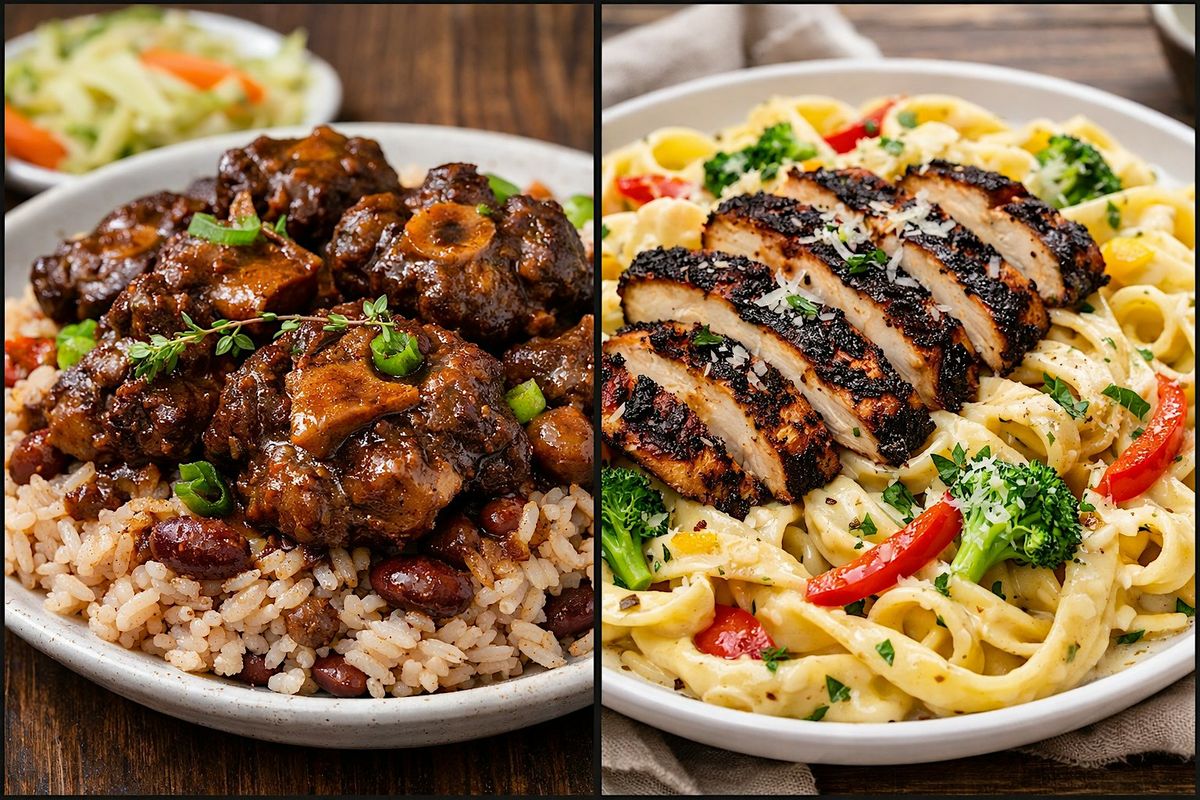 Info: Menu Choice 1: Jamaican style Oxtails with Rice and Peas, Pasta Salad, Corn Bread, Key Lime Pie and Cannaberry Punch