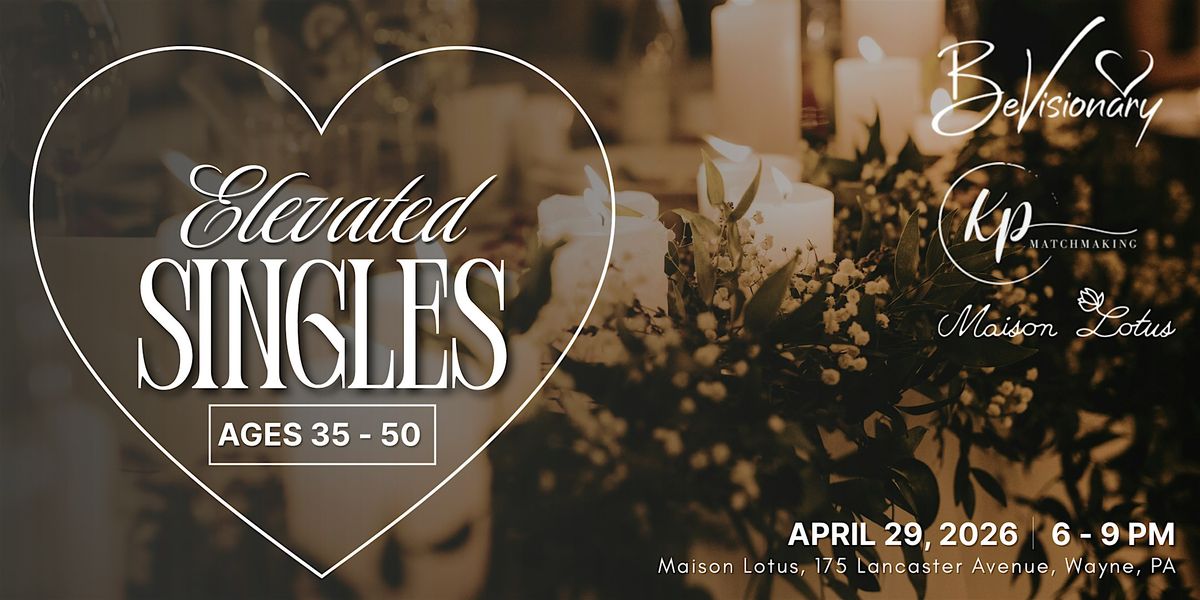 Elegant, classy singles in Pennsylvania. Ages 35-50. April 29th, 6pm to 9pm. Tickets $65 Solo, $120 You + Single Guy Friend.