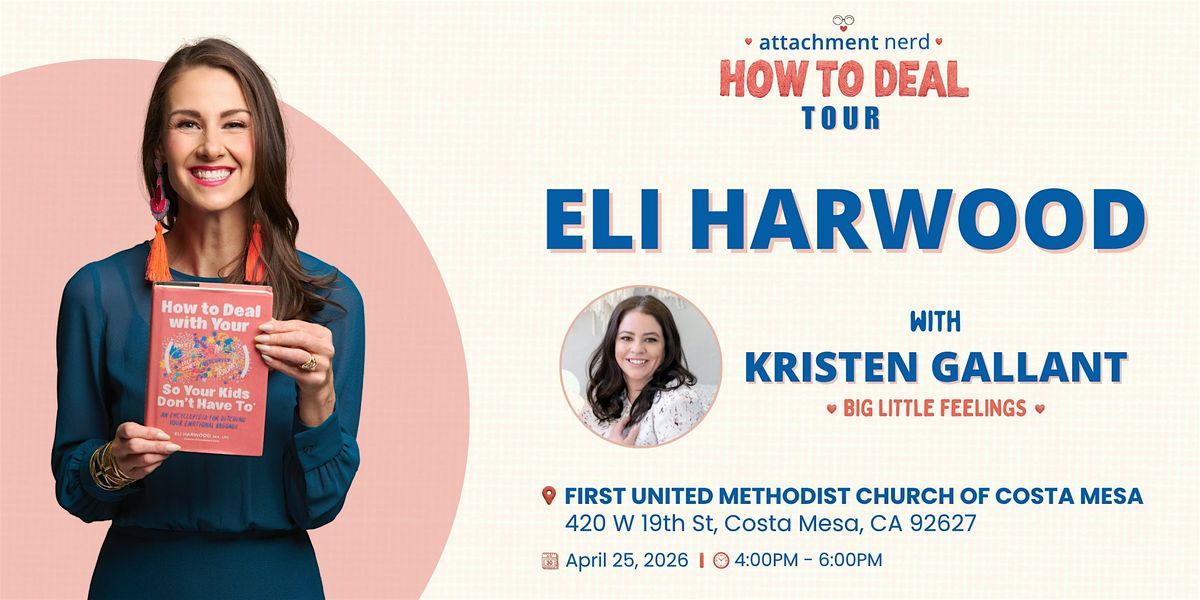 On this stop of her book tour, join us for a special book launch celebration as licensed therapist, author, and educator Eli Harwood celebrates the release of her new book, How to Deal with Your ____ So Your Kids Don't Have to: An Encyclopedia for Ditching Your Emotional Baggage, in conversation with Kristen Gallant on April 25, 2026 at 4:00 PM at First United Methodist Church of Costa Mesa!