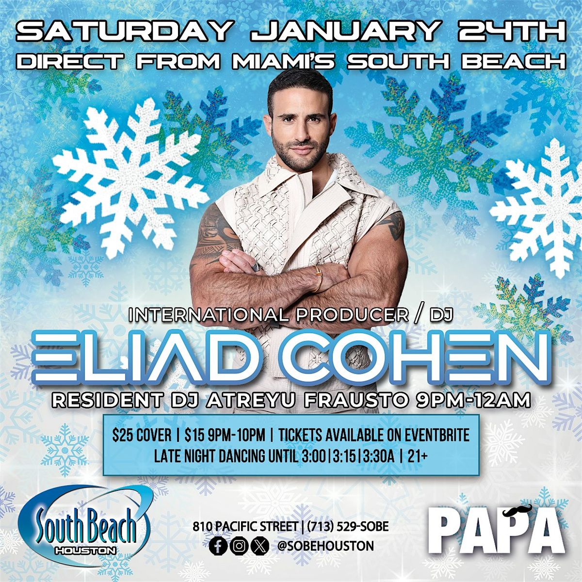 Experience an unforgettable night in person with the one and only Eliad Cohen. Join us for great vibes, amazing beats, and an epic atmosphere right in the heart of Houston. Don't miss out on this chance to party with Eliad live!