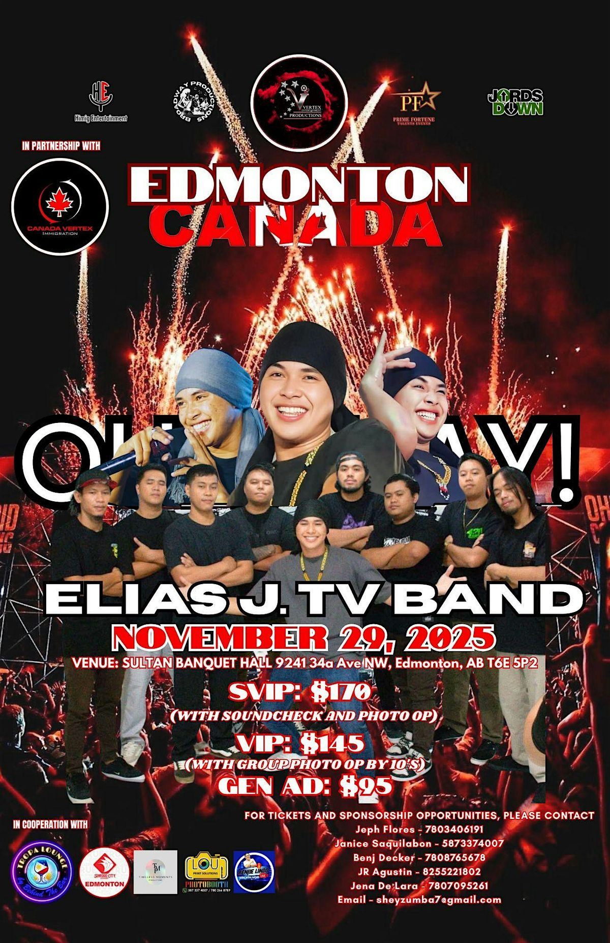 Come join us for an unforgettable night of music with the ELIAS J. TV BAND as they kick off their Canada Tour! Get ready to dance and sing along to their energetic performances at Sultan Banquet Hall 9241 34a Ave NW. Don't miss out on this amazing opportunity to see them live!