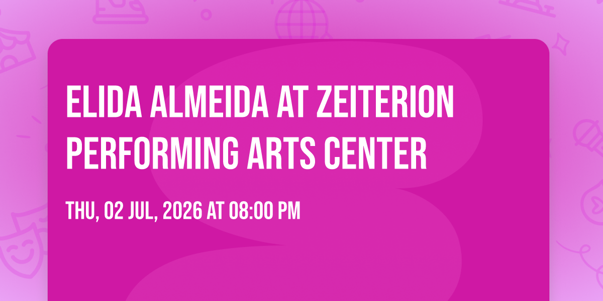 π Prepare to be amazed at Elida Almeida at Zeiterion Performing Arts Center, the most anticipated gathering of the season! π Set against the stunning backdrop of Zeiterion Performing Arts Center in vibrant New Bedford, MA, this event promises to redefine your expectations. π Mark your calendars for July 2nd, 2026 at 08:00 PM and get ready to immerse yourself in an atmosphere of wonder and excitement. β¨ From the moment you arrive, you'll be transported into a world where memories are made and stories come alive. They have crafted an experience that perfectly harmonizes entertainment, innovation, and community spirit. π Join us as we create moments that will be discussed for years!