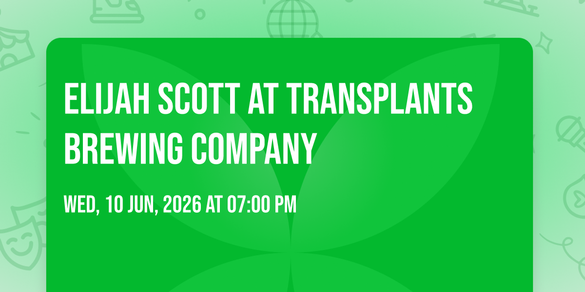 🌟 Step into a world of wonder at Elijah Scott at Transplants Brewing Company, where extraordinary moments await! 🏛️ Located at Transplants Brewing Company in dynamic Palmdale, CA, this event will become the talk of the town. 📅 Join us on June 10th, 2026 at 07:00 PM for a celebration that defies the ordinary. ✨ This curated experience brings together the best of entertainment, culture, and community spirit. Every detail has been thoughtfully planned to ensure an unforgettable experience for all our guests. 🎯 Take advantage of this opportunity to be part of something special. 🎊 Early registration is recommended as space is limited!