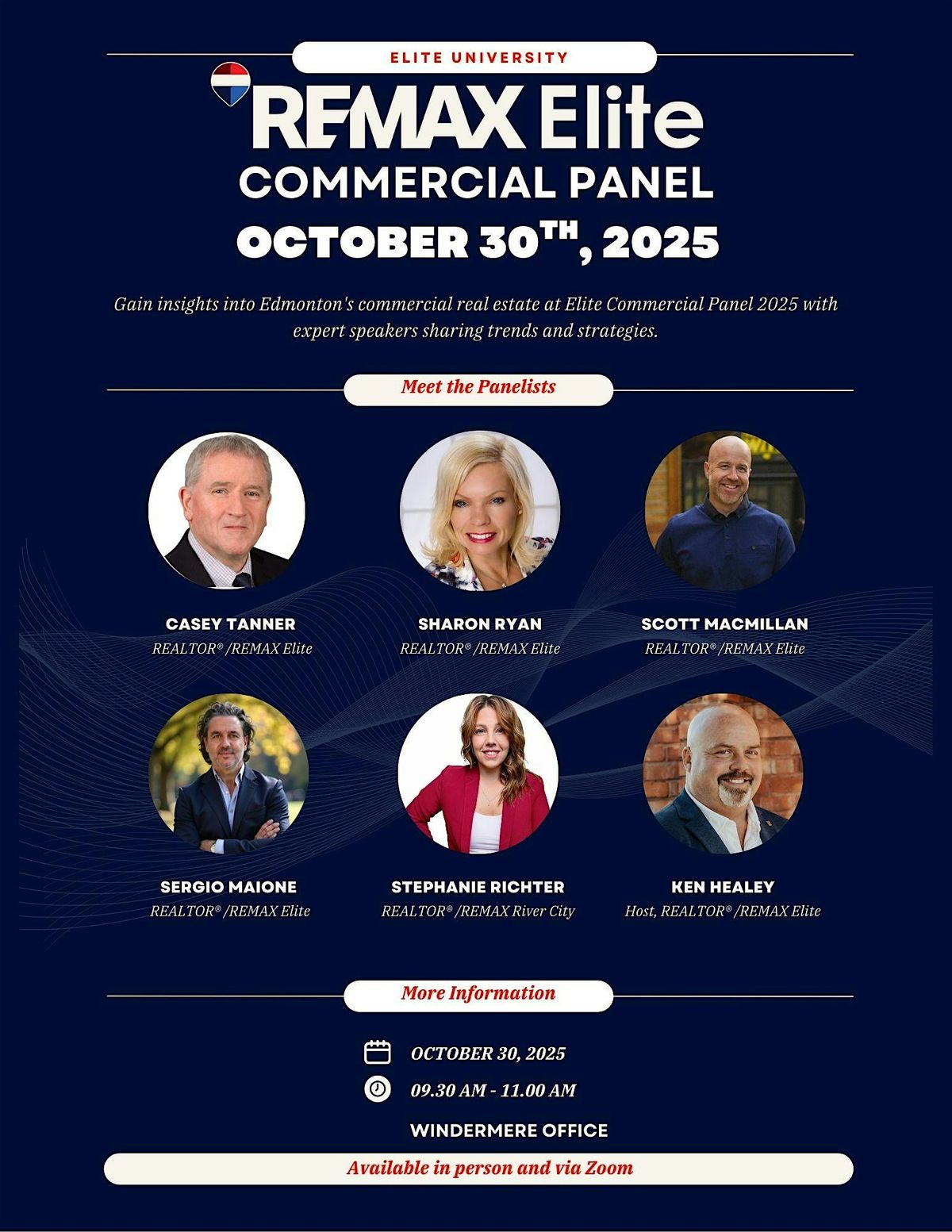 The commercial real estate market in Edmonton is evolving, creating new opportunities and challenges for investors, agents, and business owners. To help you stay informed, RE/MAX Elite is proud to host the Elite Commercial Panel 2025, an exclusive event featuring respected voices from Edmonton’s commercial real estate community.