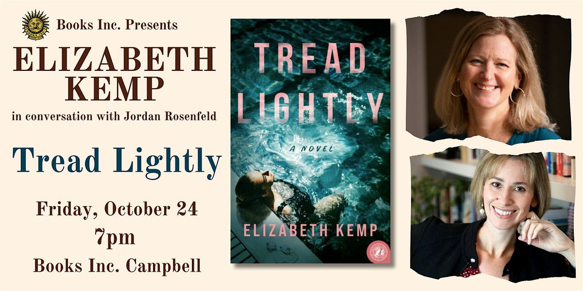 Join Elizabeth Kemp, author of new domestic thriller Tread Lightly, at Books Inc. in Campbell, CA on Friday, October 24th at 7pm to celebrate the release of her new book. She’ll be in conversation with author Jordan Rosenfeld (Women in Red) and will sign books after conversation!