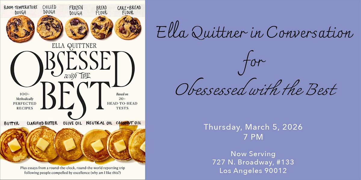 Ella Quittner, journalist, screenwriter, and humorist, in conversation for Obsessed with the Best: 100+ Methodically Perfected Recipes Based on 20+ Head-to-Head Tests. Book signing to follow.