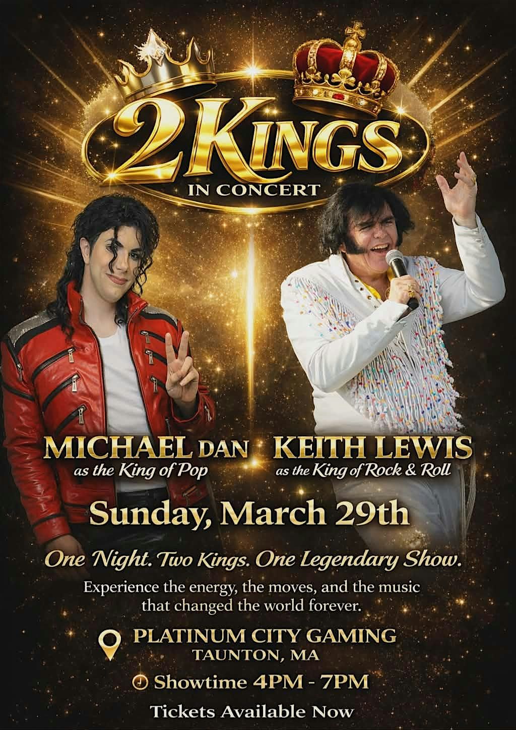Elves and Micheal Jackson 2 Kings in Concert is hitting the stage live and in person. Join us for a unique blend of magic and music as the iconic vibes of Michael Jackson meet the enchanting world of elves. This concert promises to be a night full of energy, fun, and epic performances. Don’t miss out on experiencing these two kings sharing the spotlight like never before!