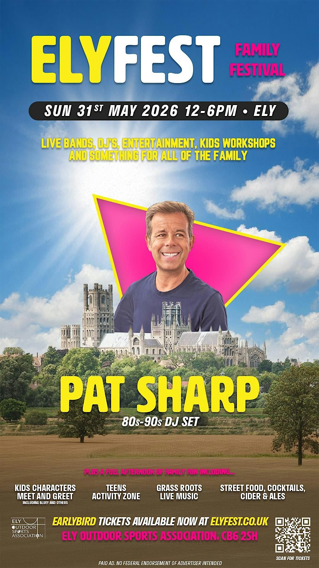 Ely Fest Family Festival returns Sunday 31st May with a MASSIVE surprise... 80s & 90s legend PAT SHARP is bringing the vibes!