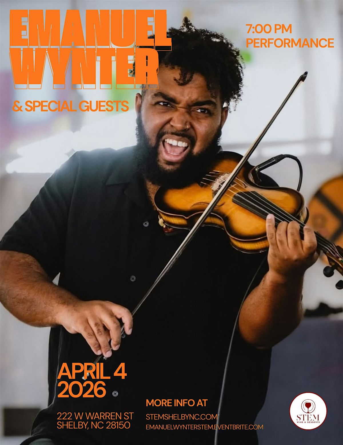 Get ready for an amazing in-person evening at STEM Wine & Desserts. Enjoy great vibes, tasty treats, and soulful tunes live with Emanuel Wynter and his special guests. It's the perfect night out experience. Rather you are set to sip your favorite wine, and indulge in some delicious desserts and savory charcuterie boards, while soaking up the music. Don’t miss this fun and cozy experience!