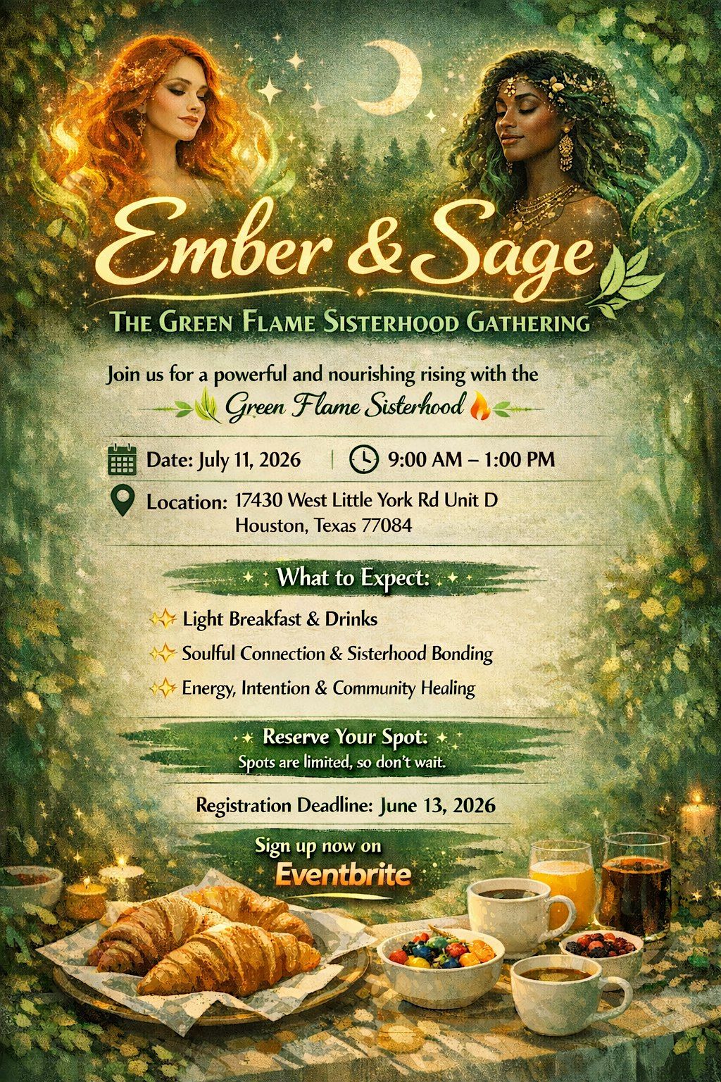 Temple of Ankaa is hosting our first in-person gathering for an unforgettable gathering of the Green Flame Sisterhood! Dive into a space filled with connection, growth, and vibrant energy. Whether you're looking to spark new friendships or ignite your inner fire, this event is the place to be. Don't miss out on the magic — come as you are and let's light up the night together! There will be a Light Breakfast with Drinks alongside fun activities. Can't wait to see you there.