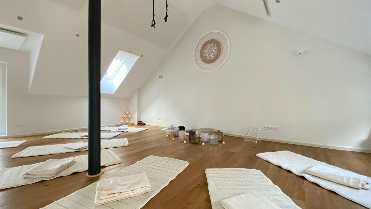 Zum Abschluss trägt dich ein tief entspannendes Sound Bath in die Stille.