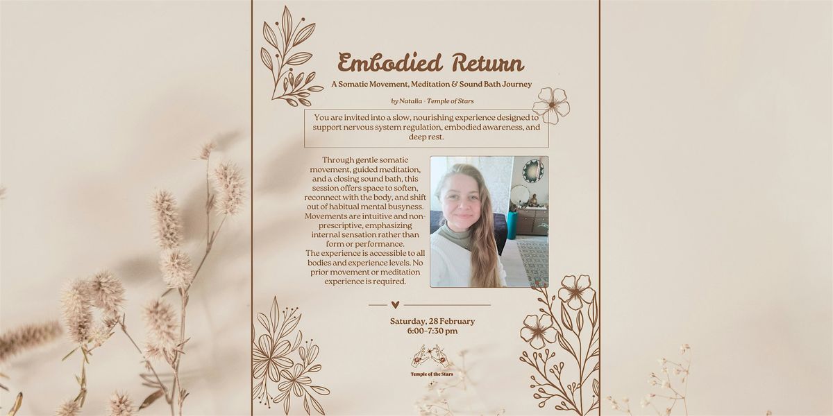Embodied Return is a gentle, trauma-informed offering designed to support nervous system regulation, embodied presence, and rest. The session weaves together somatic movement, guided meditation, and sound-based relaxation to create a coherent, grounding experience.