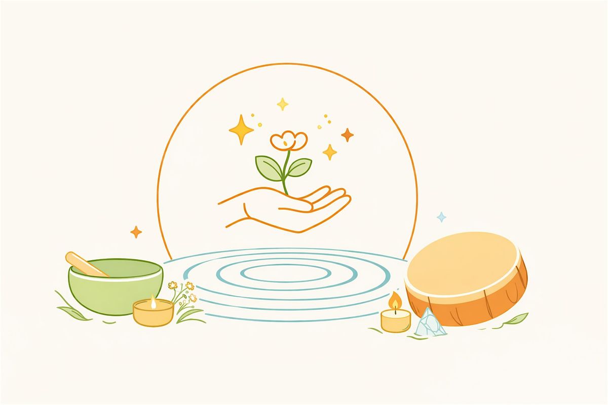 A 20-minute immersive sound bath — featuring shamanic drum, singing bowls, bells, and elemental soundscapes — invites you into deep receptivity and inner listening.