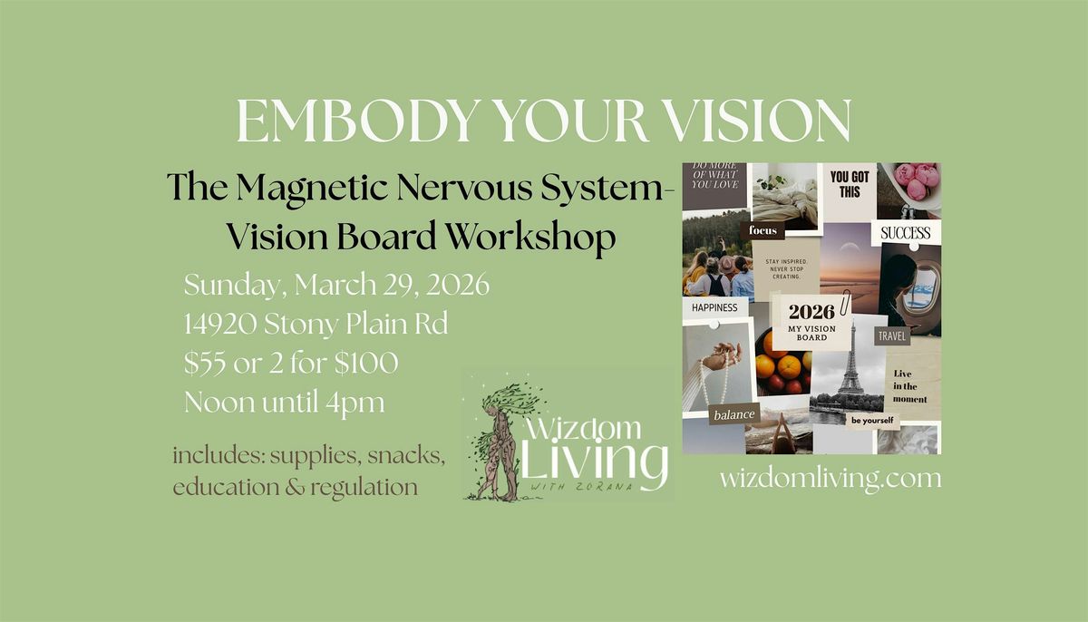 β¨ Embody Your Vision: The Magnetic Nervous System +Vision Board Workshop π March 29th, 2026 π14920 Stony Plain Rd β¨$55 | $100 for 2 tickets (Bring a Friend) 10% EARLYBIRD SALE ends March 1,2026