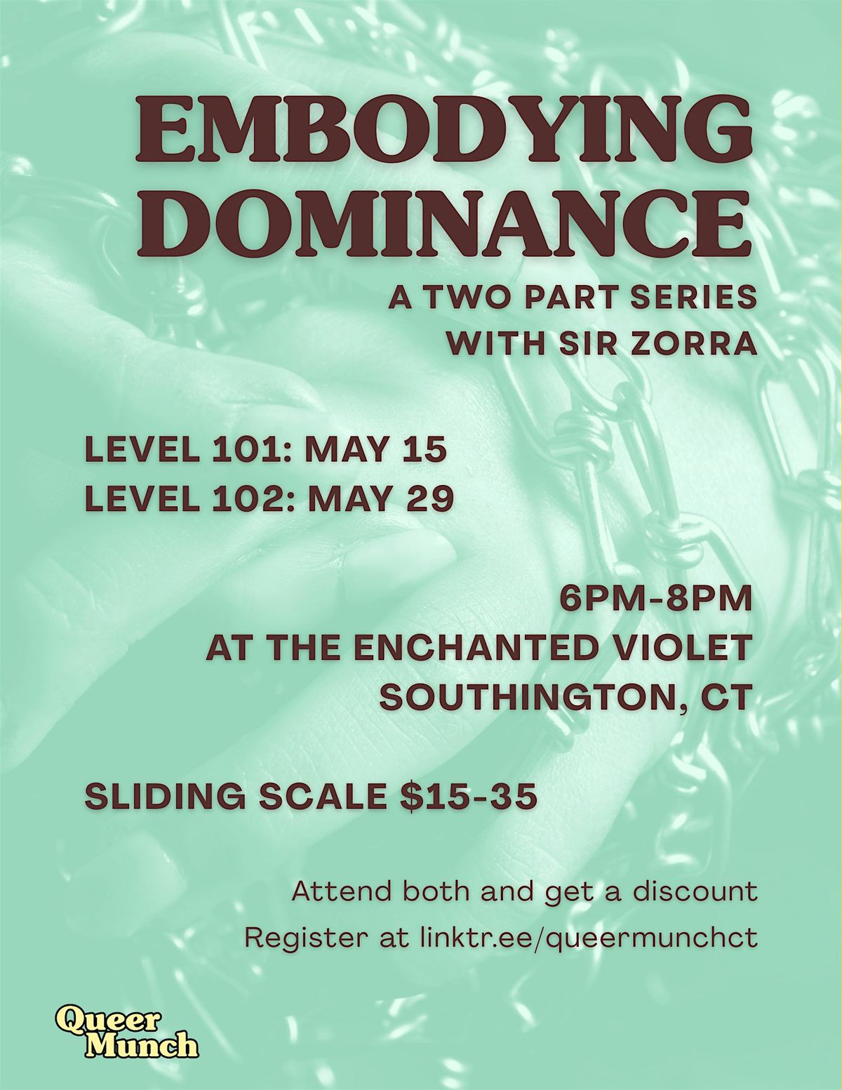 If you attended Zorra's Embodying Dominance class previously to the May 15 event and would like to attend, you are welcome to do so! Attendance at the 101 is NOT required for the 201 but is strongly encouraged.