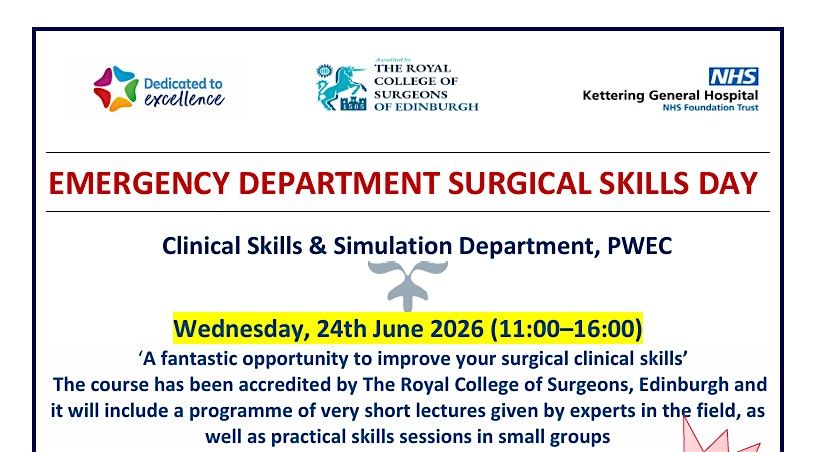 The course has been accredited by The Royal College of Surgeons, Edinburgh and it will include a programme of very short lectures given by experts in the field, as well as practical skills sessions in small groups.