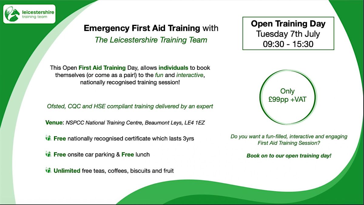 This Open First Aid Training Day, allows individuals to book themselves (or come as a pair!) to the fun and interactive, nationally recognised training session!