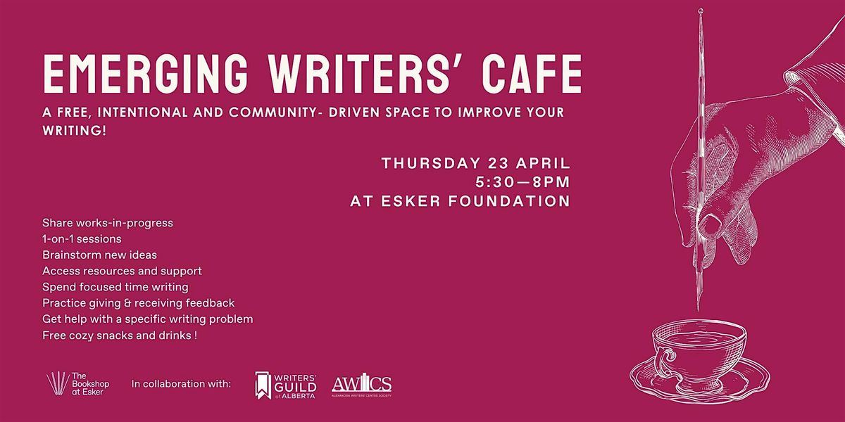 The Emerging Writers’ Café is a quarterly meet-up for local emerging writers of all genres looking to develop their projects and ideas. It’s a space to share work, practice giving and receiving feedback, access resources and support, and spend focused time writing. Whether you're looking to strengthen your skills, make progress on a project, or workshop new ideas, it’s a great opportunity to connect and grow within Calgary’s writing community.
