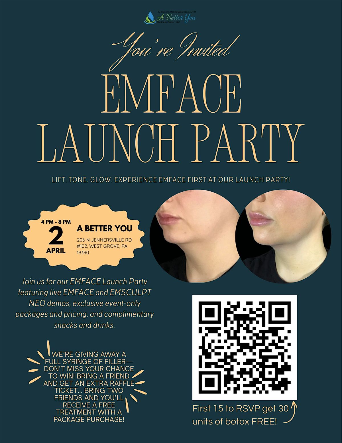 Get ready to celebrate the big debut of EMFACE! This is an in-person event where you can experience live demos, enjoy some great vibes, complimentary snacks and drinks, and exclusive event package pricing!! There will be a huge raffle giving away full syringes of filler, and the more you bring, the better shot you have! First 15 people to RSVP get 30 units of botox - FREE!